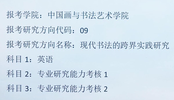 (2)必须在5月14日下午17:00前将三个科目答卷分开密封,并将三个科目和承诺书、打印的试题统一放在同一个邮寄包裹里邮寄,通过邮政EMS方式邮寄至:浙江省杭州市转塘镇象山352号中国美术学院招生办,邮编:310024,联系电话:87200090(以EMS寄出时间为准)。邮寄外包装上必须注明:报考院系所的名称 + 招生研究方向代码及名称+考试科目。(下图为范图,考生须根据自身报考信息填写)。